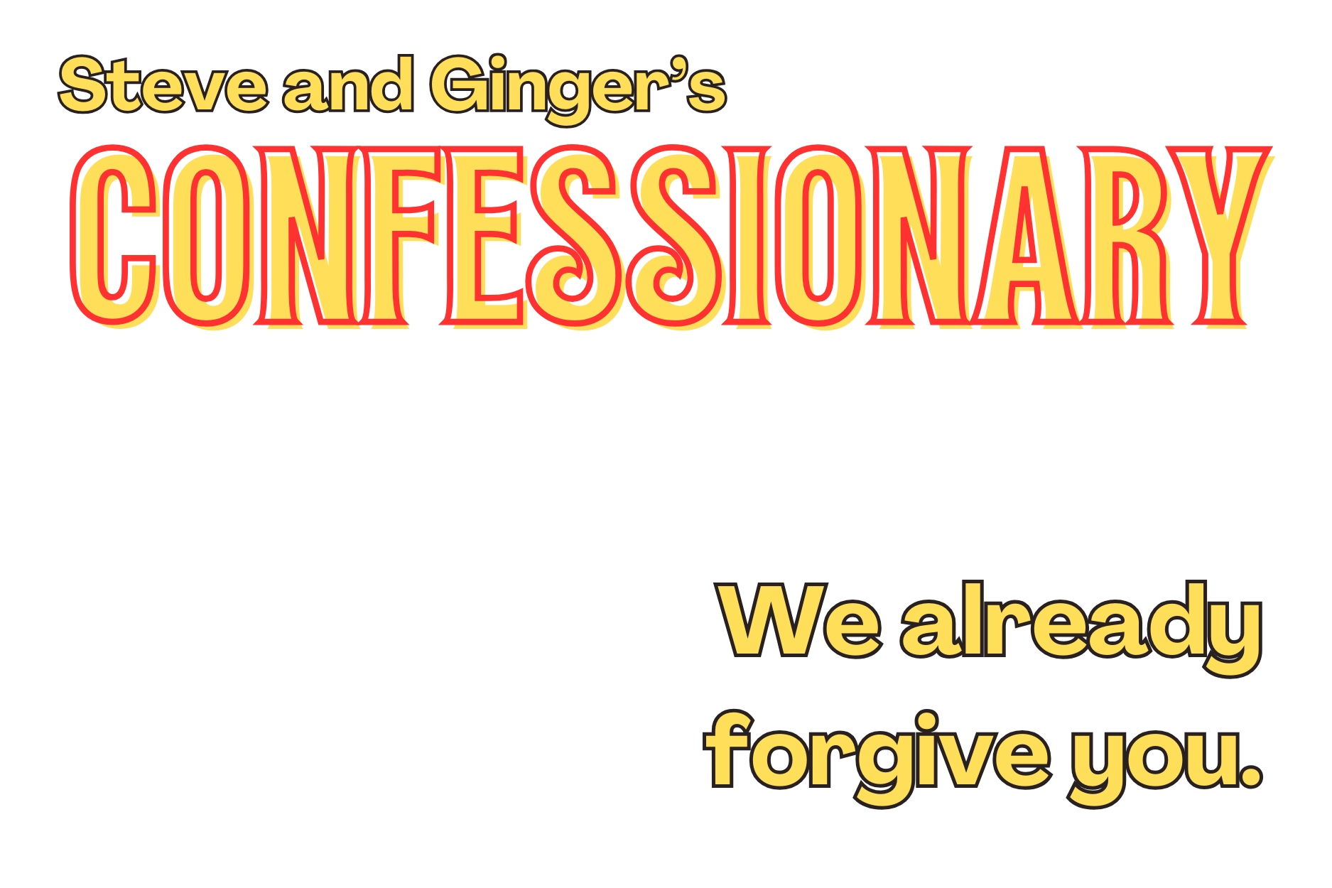 You settle in. We briefly explain the rules. Ginger breaks the ice with a confession. We’ll hear an invited confessor or two. After a brief drinks break the floor is open for fast confessions for those who feel compelled. (Rest assured, there is NO pressure.) Then Steve confesses musically – via songs so fragile they’re already broken.